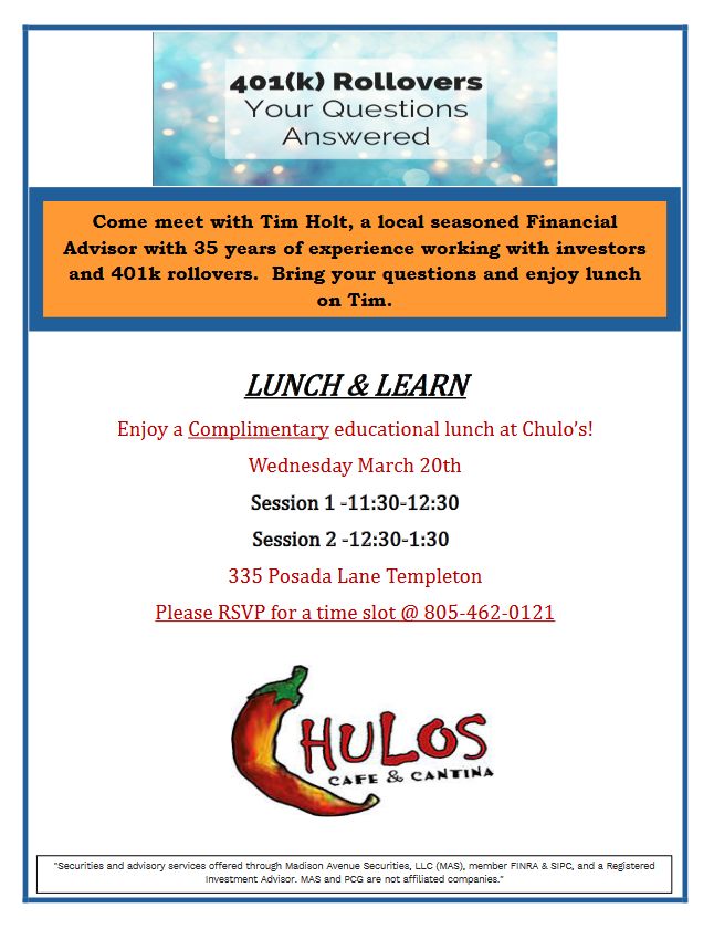 Bring a friend. If your company changes plans, gets bought out, or cancels their 401k plan, learning about important options and making the right choices for you and your family are very important.